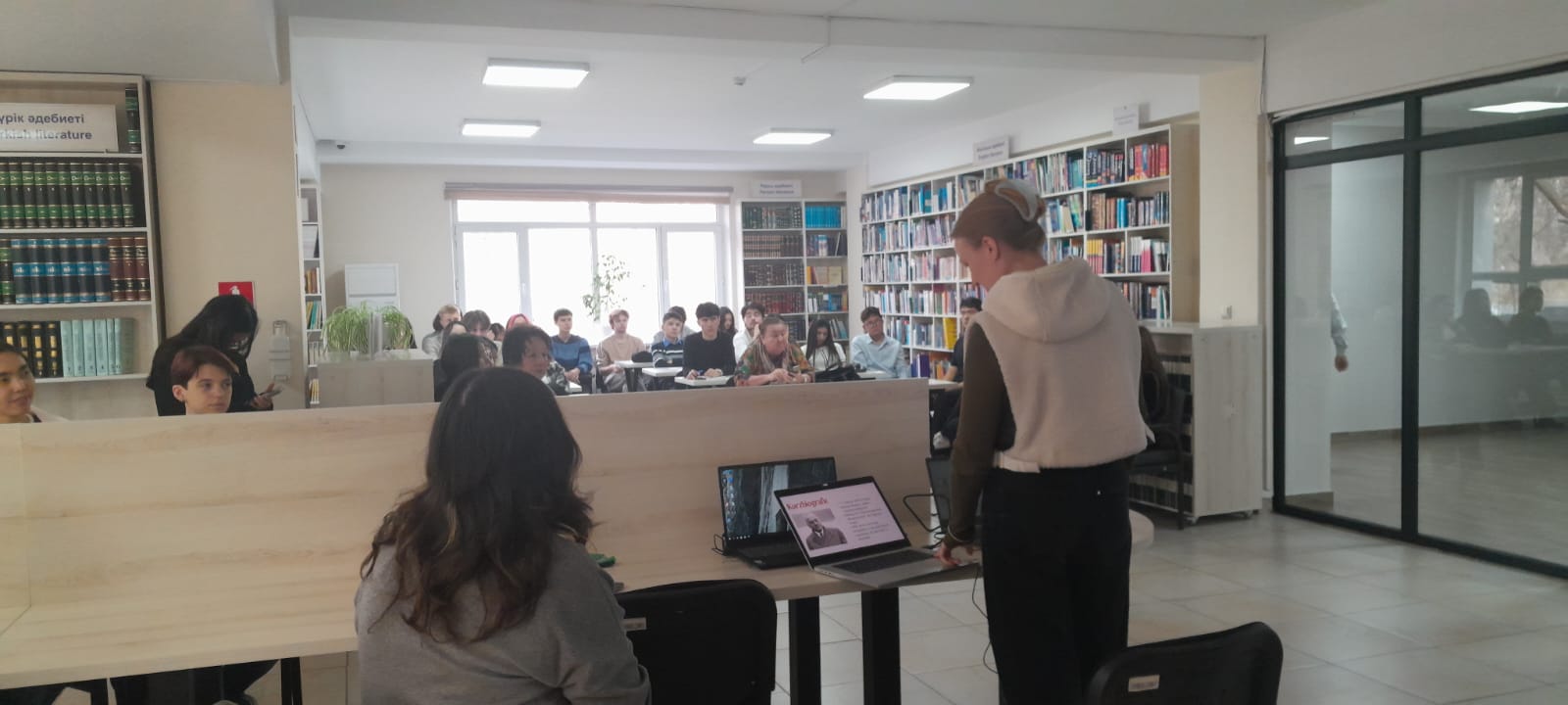 19.11.2025 ж. Шетел тілдері әдебиеті оқу залында австриялық психолог, психиатр және ойшыл, жеке психология жүйесін жасаушы – Альфред Адлер туралы танымдық баяндама оқылды.