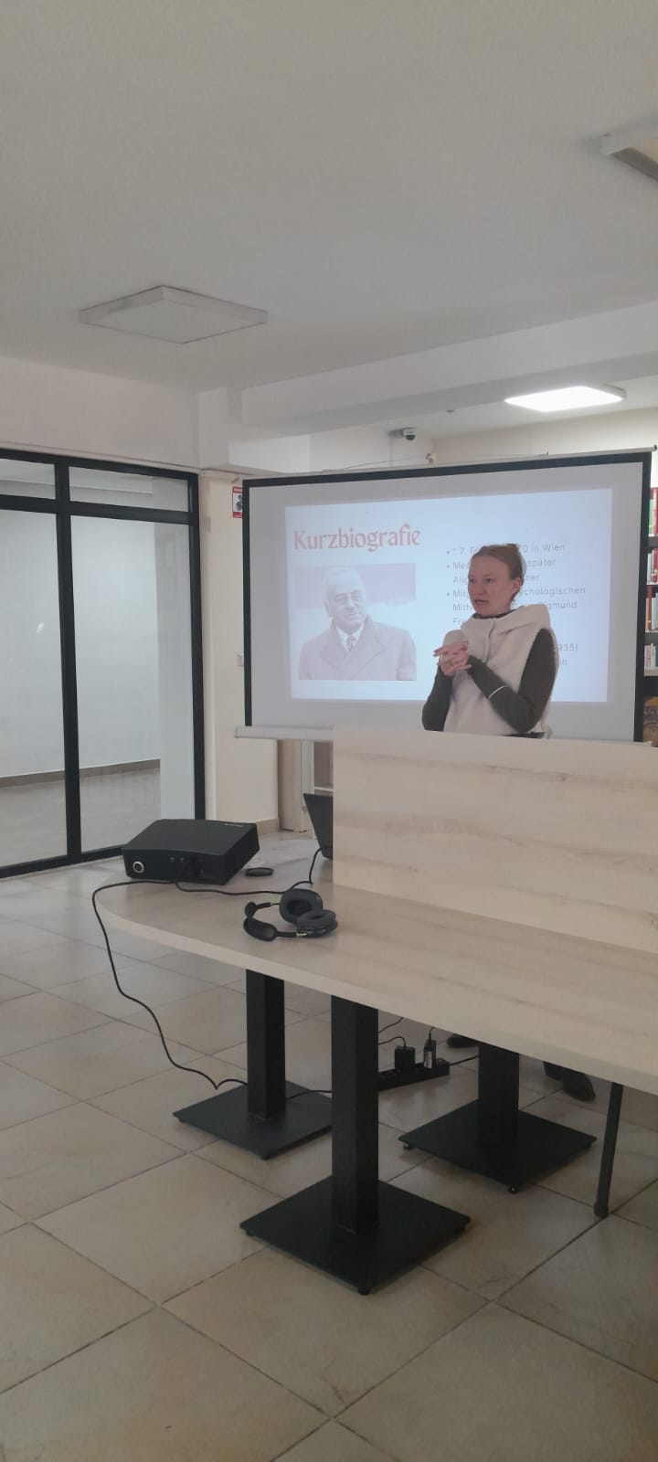 Австриялық кітапхананың ғылыми жетекшісі, профессор Шпекбаева Бахыт Жатқанбаевна кітап қорындағы Альфред Адлер туралы әдебиеттерге шолу жасады.