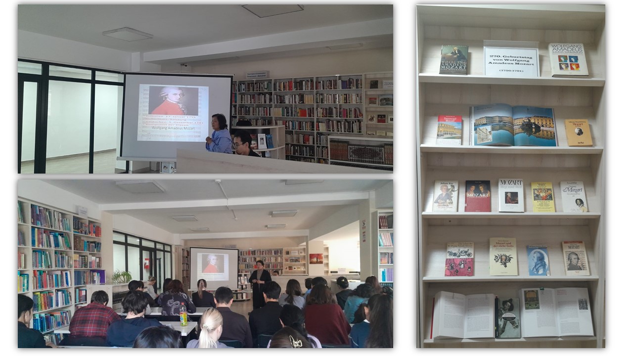 17-ші ақпан 2026 ж. оқу залында әлемдік классикалық музыканың дамуына орасан зор үлес қосқан асқан шебер скрипкашы, клавесинист, органист, дирижер, Вена классикалық композициялар мектебінің жарқын өкілі Вольфганг Амадей Моцарттың туғанына 270 жыл толуына орай «Классика королі – Моцарт» атты танымдық сағат өткізілді. Студенттерге компзитордың өмірі мен шығармашылығы жайлы слайд көрсетіліп, кітап көрмесінің таныстырылымы өтті. Іс-шара соңында студенттер пікір алмасты.
